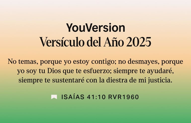 YouVersion, creador de las aplicaciones bíblicas más descargadas del mundo con más de mil millones de instalaciones, anunció que Isaías 41:10 fue el versículo más leído, compartido y buscado de 2025. Es la cuarta vez en seis años que el pasaje encabeza la lista, una señal del profundo anhelo de esperanza en medio de la incertidumbre global.
